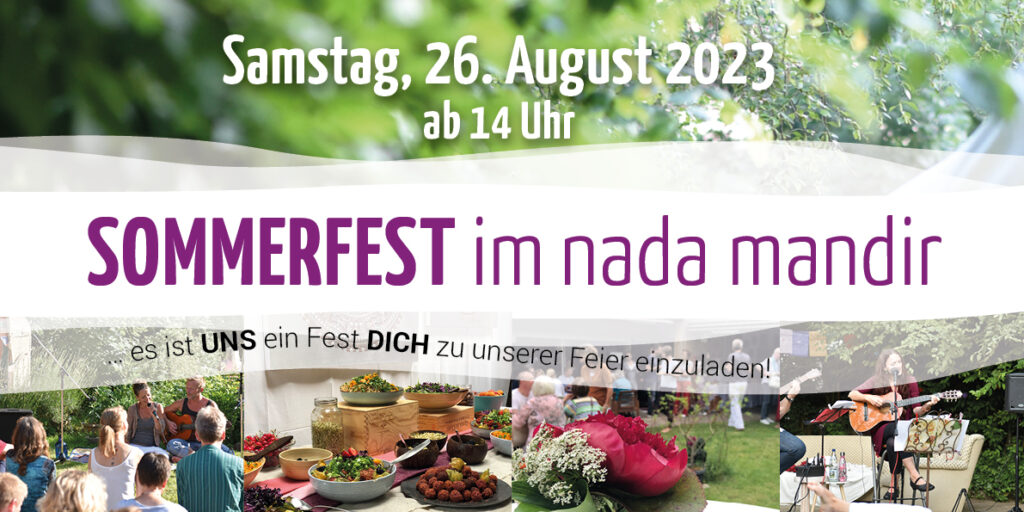 Sommerfest im Nada Mandir am 26.August 2023 ab 14 Uhr. Das Seminarhaus Nada Mandir wird 4 Jahre alt und wir möchten mit Euch feiern! Angebote > 14:30 Uhr:  Klangentspannungs-Reise für Kinder mit…